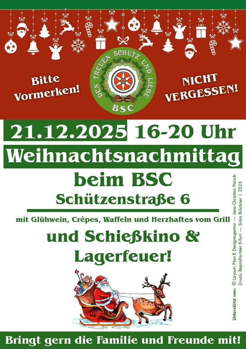 der Vorstand des BSC Erfurt lädt Euch und euere Familien zum Weihnachtsnachmittag am 21. Dezember von 16.00-20.00 2025 ein
